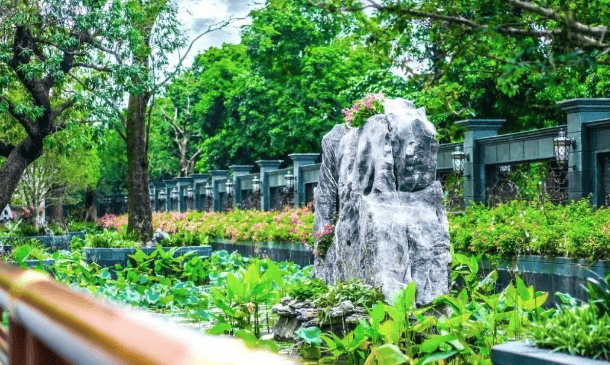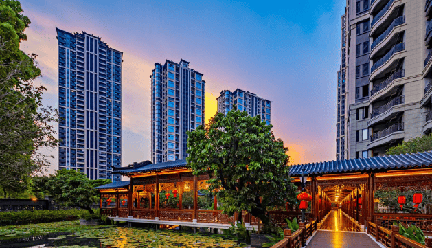 星河湾半岛五号对园林与建筑的雕琢近乎苛刻。屋顶采用精挑陶瓦,地面铺装进口柚木地板,墙面饰以汉白玉石材;苏州非遗工匠亲手打造满工雕花,每一处纹样皆为艺术品。园区内搜罗华南珍稀树种——飘水荔枝树、特大桂花、秋枫、香樟等,打造“名树博物馆”;景石则百里挑一,从各地石场反复比对,只为还原自然山水之神韵。这种“一半人作,一半天成”的营造哲学,让园林不止于观赏,更成为生活的一部分。