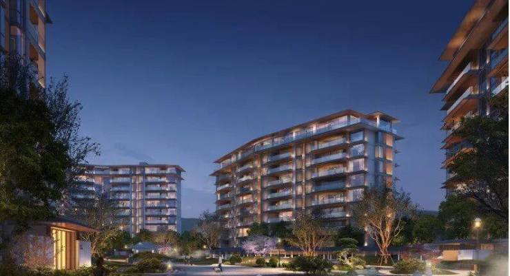 建筑外立面采用东方美学风格,以浅灰石材与深色金属线条搭配,整体色调沉稳内敛。不同于市面上常见的玻璃幕墙豪宅,合景臻颐府更强调材质肌理与自然光影的互动。楼体整体抬高7米,并向道路方向退让15米,既提升了私密性,也减少了外部噪音干扰。这种处理手法在城市核心区较为少见,尤其适合注重居住静谧感的改善型买家。