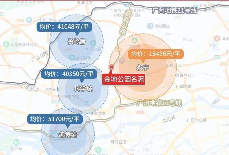 金地公园名著位处增城永宁板块,新新大道以西,与珠江·花屿花城和合景·誉山国际仅只一路之隔。
