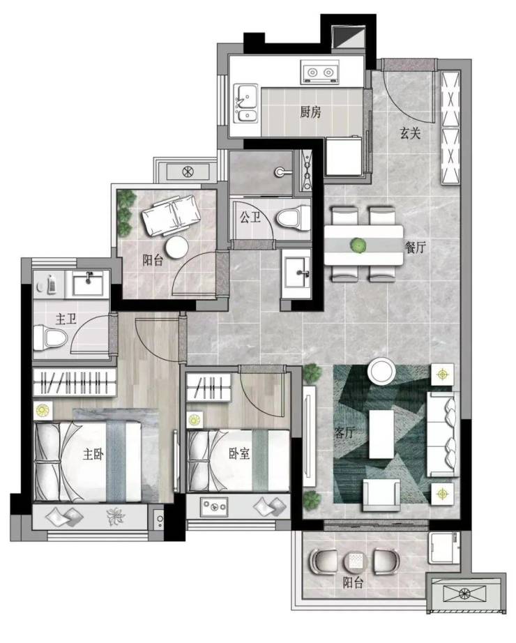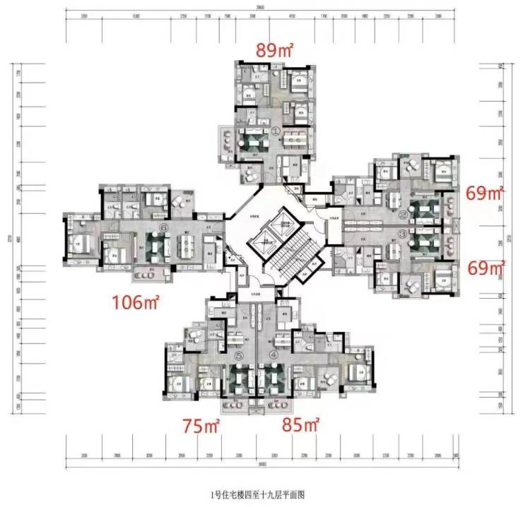 产品户型方面,本次项目首推为6栋,产品面积约69-106㎡三至四房,整体设计紧凑实用。