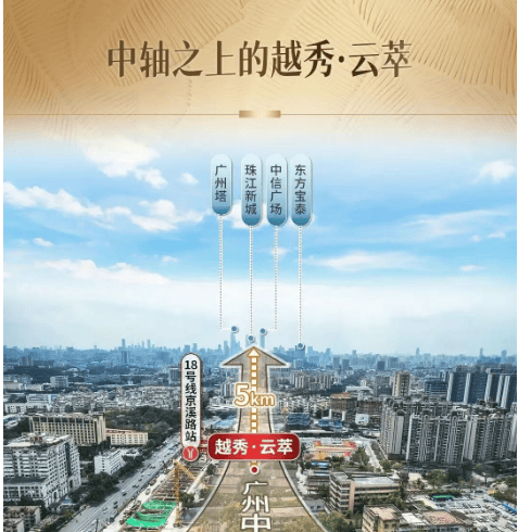 越秀·云萃的珍贵,首先源于其不可复制的地段。项目坐落于广州城市中轴线北延,白云与天河两区交汇的黄金地带,距离珠江新城CBD的直线距离仅约5公里。这不仅仅是一个数字,它意味着您将被广州最顶级的城市资源所环绕。以项目为圆心,5公里半径内,广州天河体育中心、天河城、正佳广场、太古汇等顶流商圈触手可及;信达金茂广场等区域商业中心举步即达。这里既有成熟城区的便捷与繁华,又坐享白云山生态绿肺的滋养,推窗可见山景。这种“出则繁华,入则宁静”的二元统一,是中心区稀缺的生活状态。
