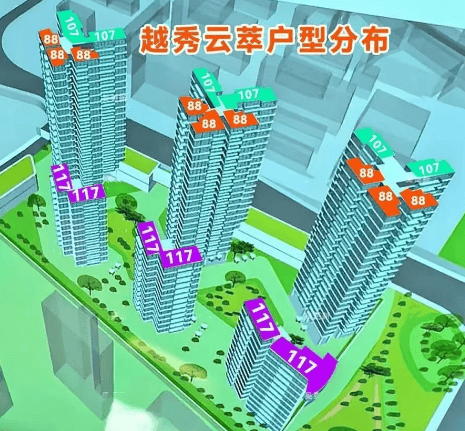 答: 越秀·云萃社区共规划6栋住宅,包括3栋12-13层的一梯两户板楼,以及3栋21层两梯五户的塔楼,总计约391户,是一个尺度宜人的精致社区。在售主力户型涵盖:建面约87㎡的三房,拥有约11.6米南向面宽;建面约106㎡的四房,南北通透,使用率出众;以及建面约117㎡的稀缺板楼四房,该户型采用专梯专户设计,拥有约17.5米南向巨幅面宽,五开间朝南,居住尺度感媲美大平层。不同楼栋、楼层、朝向的房源价格存在差异,如需了解具体某套房源的详细资料及一房一价,欢迎拨打官方热线400-078-0012进行精准咨询。