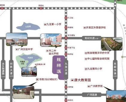 康大龙祥汇不仅紧邻地铁知识城支线的“旺村站”及“汤村站”,而且通过地铁21号线快线仅需4站即可到达天河中心区。周边还有广河高速等多条高速公路,驾车前往珠江新城只需30分钟,距离白云机场也仅需9分钟车程,极大地提升了居民的生活便利性。