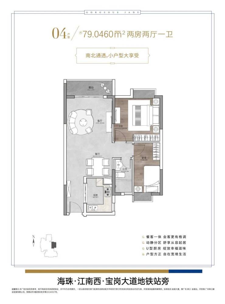 海珠【珠江金瑶台】推出多种户型,面积段覆盖79-103㎡,包括紧凑型二至三房的不同布局,充分满足各类家庭需求。