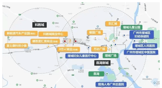 项目对面有 4 万方大型商业体在建,未来建成后将引入超市、餐饮、娱乐等丰富业态,带来一站式消费体验;周边 5 公里内还有增城万达广场、东汇城双成熟商圈,汇聚众多知名品牌与休闲娱乐设施;此外,山田地铁站附近约 20 万平荔富汇景商业综合体已动工,未来区域商业氛围将进一步升级,满足业主不同层次消费需求。