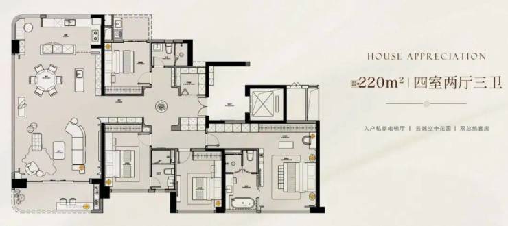 210㎡环幕四房:总价约2275万元起,独梯独户,珠江新城天际线景观,超大客厅+多个观景阳台,赠送面积使实际使用率超140%(相当于210㎡购入294㎡空间)