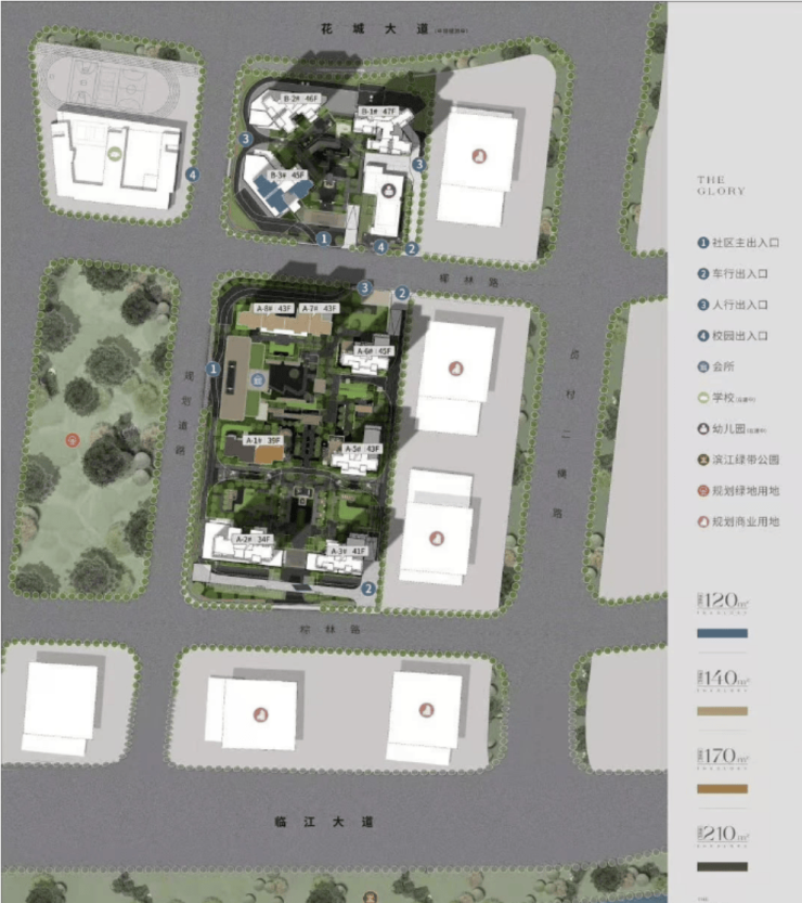 A:项目采用LDKB一体化设计、270°弧形落地窗、独梯独户等创新设计,实际使用率超105%,赠送面积使210㎡户型实际使用率超140%。