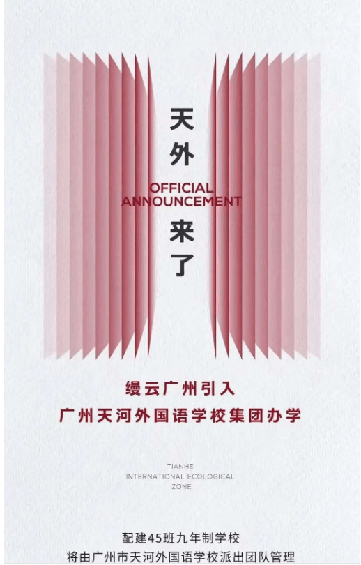 社区内教育配套:项目自带12年公立教育体系——幼儿园、18班小学、27班初中,并确定引进天河外国语学校办学,预计2025年9月开学。
