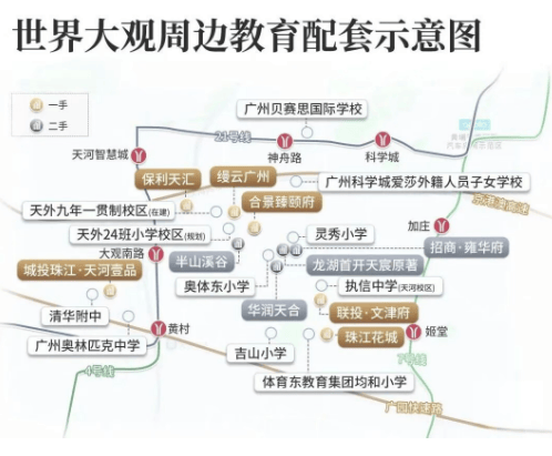 周边名校环绕:周边荟萃五大省级中学——清华附中、执信中学、天河外国语学校、广州中学、广州岭南中学(暂定名)。