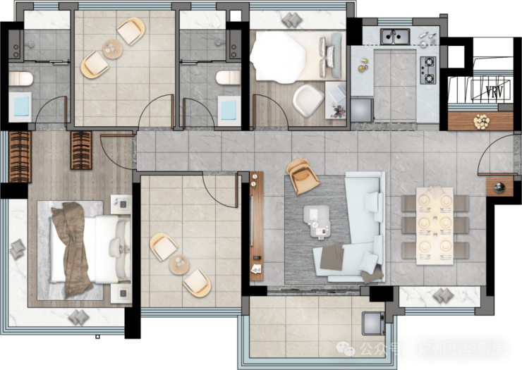 卓越晴翠府的户型设计充分考虑了现代家庭的多样化需求,推出了多种创意户型。以建面约八十九平方米的“晴熙”户型为例,该户型采用了一加二室的布局,通过巧妙的空间划分,实现了三房两卫的功能。开放式 U 型厨房搭配定制岛台,不仅提升了餐厨互动性,更让一日三餐变得温馨有趣。主卧配备二百七十度转角飘窗,将室外美景尽收眼底,让居住者在卧室中也能享受到四季变换的视觉盛宴。LDK 客餐厨一体化设计,则打破了传统空间的界限,让客厅、餐厅与厨房形成一个开放的整体,容纳一家人的欢声笑语。