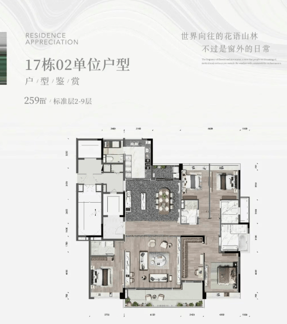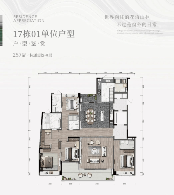 在寸土寸金的天河核心区,容积率2.0已是难得的奢侈。合景·臻颐府占地约5万㎡,总建面约9.3万㎡,仅规划17栋6-11层纯板式低密建筑,全盘仅315户,户均面积超260㎡,是天河在售住宅中起步面积最高的项目,真正实现了“非富即贵”的圈层纯粹性。
