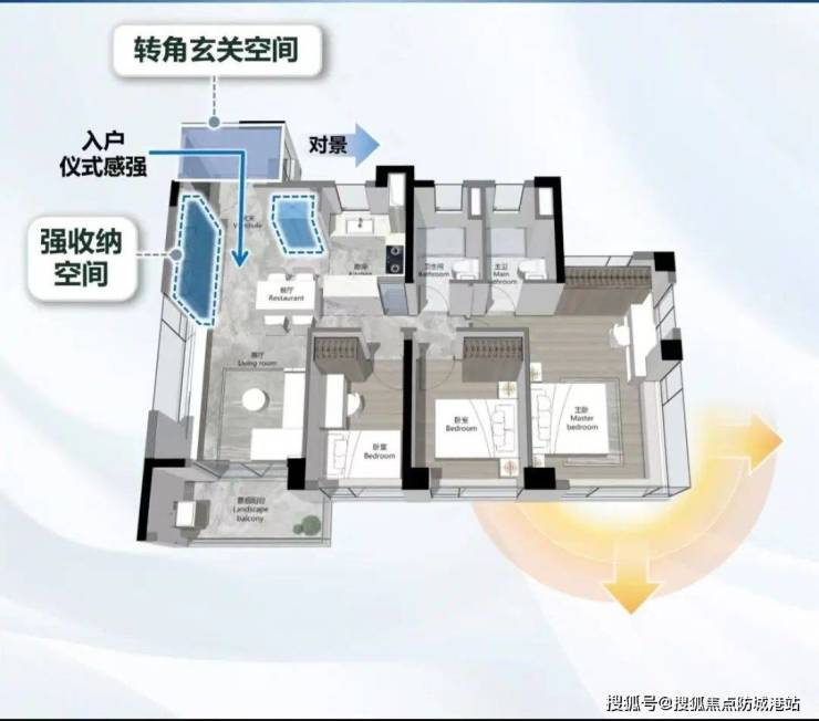 建面约110㎡南北通透三房:双面宽阳台,北侧双次卧可灵活改造为双孩成长空间,总价约580万起。