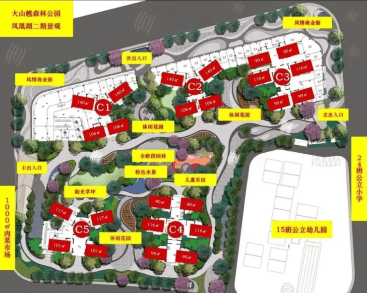 项目共分四期开发,目前ABCE地块(仅住宅)均已建成并交付。其中**四期“樾山湖组团”**为最新推售区域,紧邻凤凰湖核心湖区,部分楼栋可享一线湖景与山景双资源,景观价值尤为突出。