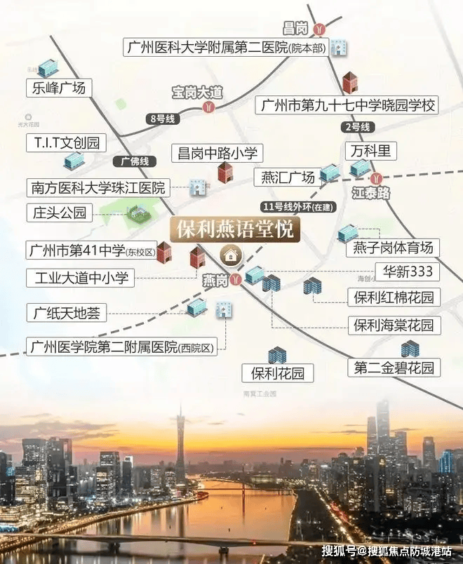 公交:项目门口设“燕岗站”,10条线路覆盖海珠、荔湾、天河。