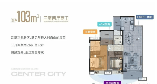 99/103/108平方米户型:紧凑实用,适合小家庭或首次置业者。