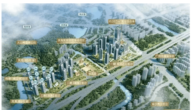 项目邻近蕉门河景观带,步行即可抵达蕉门公园;小区内绿化率超过35%,中央园林和休闲步道为居民提供了宁静舒适的休闲环境。项目北面是占地946万平方米的大山乸森林公园,是南沙第二高山峰,凤凰湖景区共规划7个湖区,其中凤林湖和凤采湖就在项目北面,为居民提供了亲近自然的机会。