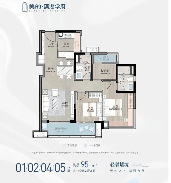 项目主打佛山新规高拓户型,飘窗全拓展,整体使用率最高达95%-100%。这是什么概念?也就是说,你买的建筑面积,几乎等于实际可使用面积。在传统楼盘中,公摊面积往往占到20%-30%,导致实际使用面积大打折扣。而在美的·滨湖学府,通过巧妙的设计,将飘窗、阳台等空间全部计入套内面积,极大地提高了空间利用率。