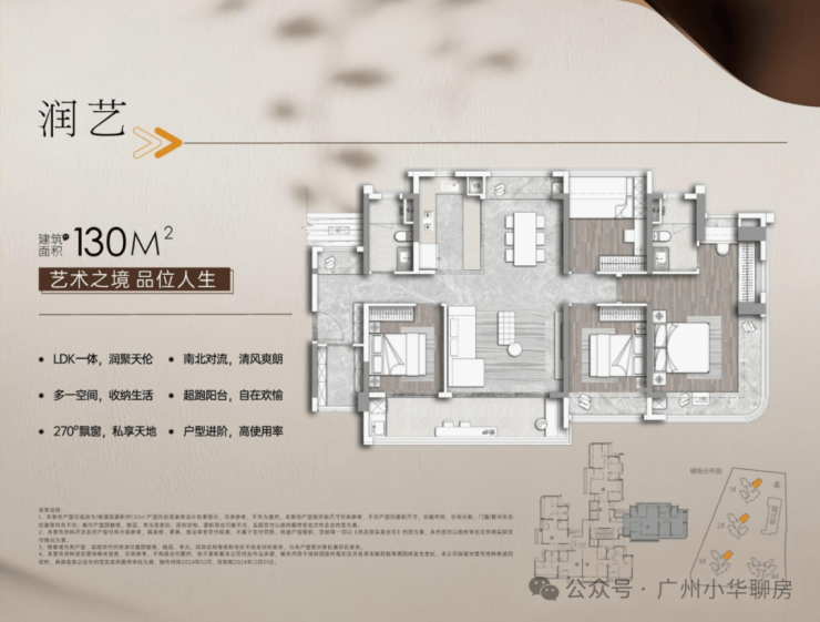 ◎ 约130㎡ · 南北对流五房 · 两厅两卫