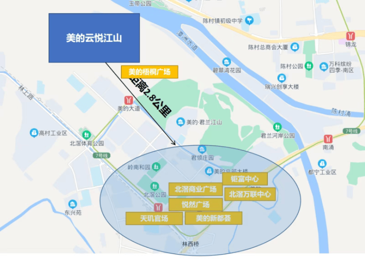 广佛通勤族最关心的,从来不是“有没有地铁”,而是“能不能半小时到广州核心”。美的云悦江山的答案是:可以,而且很稳。项目距广州7号线美的大道站仅800米,乘坐7号线3站到广州南站(换乘2/22号线),6站直达万博CBD,9站抵达大学城——全程无需换乘。若需前往禅城或桂城,步行至佛山3号线北滘西站(约1公里),15分钟直达祖庙、千灯湖。自驾方面,美的大道为双向8车道主干道,5分钟上广佛江珠高速,30分钟覆盖佛山新城,50分钟直抵番禺广场。据2025年底交通大数据显示,北滘至广州南站早高峰平均通勤时间仅28分钟,优于南海千灯湖部分区域。这种“双地铁+高速网”的立体交通结构,让云悦江山成为真正意义上的“广佛生活枢纽”。