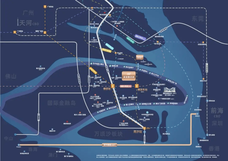 自驾出行方面,项目周边形成 “三横三纵” 立体路网:横向有凤凰大道、万环西路、南沙大道,纵向有京珠高速、广澳高速、南中高速,可快速通达广州主城、佛山、东莞、深圳等大湾区核心城市。其中,南中高速已正式通车,实测从项目自驾至广州南站仅需 25 分钟,至珠江新城约 40 分钟,至深圳前海约 60 分钟。