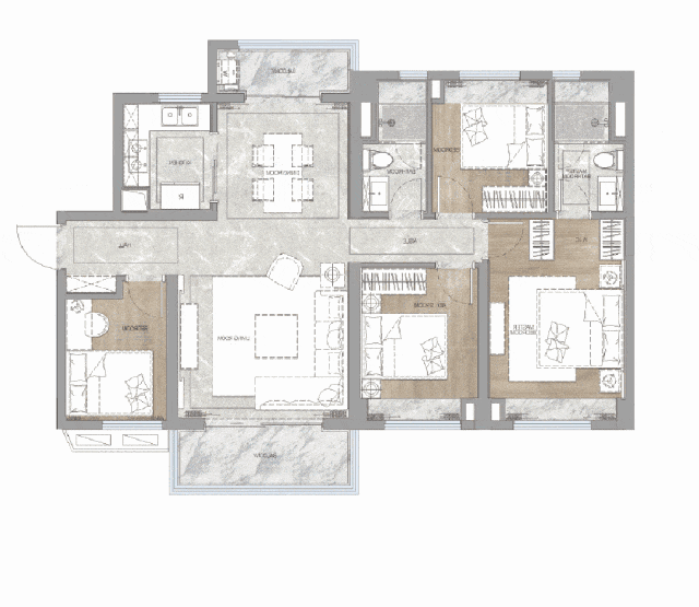 3.120㎡ 平层四房二卫户型