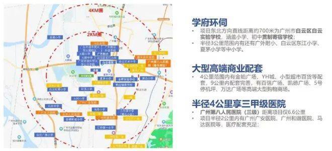生活配套丰富,约 12000㎡超大运动公园功能多样,篮球场、足球场等场地满足全家运动需求,还兼具会所、文娱活动场馆及配套商业功能。对面约 16 万平方米综合商业区金铂广场在建,涵盖商业城、办公楼等,日常生活所需下楼即达。项目身处白云新城核芯生活圈,周边百信广场等大型商业中心环绕,白云国际会议中心等地标性市政配套齐全,休闲娱乐、高端配套一站式满足。医疗方面,虽广州第八人民医院距离项目 6.6 公里,但小区半径 2km 内有多家医院。距离白云湖东湖一公里,方便居民休闲散步野餐。