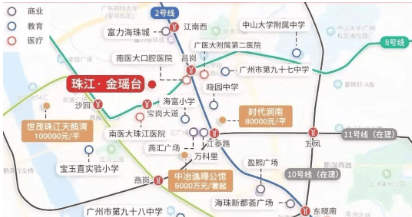 想象一下,您入住珠江金瑶台后的美好生活场景。清晨,阳光透过窗户洒在温馨的房间里,您在清新的空气中醒来,步行几分钟即可到达地铁站,通过便捷的双地铁网络,快速抵达城市各处工作、学习。孩子在周边优质学校接受良好教育,您无需为孩子的上学路担忧。下班后,您可以在周边繁华的商业体中尽情购物、享受美食,或者到菜市场挑选新鲜食材,为家人烹饪美味佳肴。周末,您可以带着家人到公园散步、游玩,感受大自然的美好;也可以前往广州美院参观展览,提升艺术修养。当家人身体不适时,周边的医院能迅速提供医疗服务。晚上,您在舒适的家中,与家人一起分享一天的美好。这就是珠江金瑶台为您描绘的美好生活画卷,充满了舒适、便捷、温馨与活力。