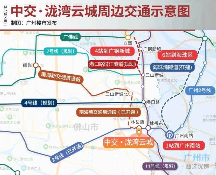 项目打造**三轨双站**上盖TOD模式,构建轨道交通、自驾路网、公共交通三位一体的立体出行体系,四横四纵主干路网环绕,无缝串联广佛双城核心区域,高效缩短时空距离,适配双城通勤、日常出行、长途出行等多元场景。轨道交通层面,楼盘无缝衔接佛山地铁2号线、南海有轨电车1号线交汇站点林岳西站,下楼步行即可直达地铁站,真正实现地铁入户的便捷生活,搭乘地铁2站直达广州南站,5站快速抵达广钢新城,轻松换乘广州多条地铁线路,通达海珠、荔湾、番禺等广州核心片区。同时,在建佛山地铁4号线、规划佛山地铁11号线落位板块周边,双轨加持完善轨道交通布局,未来轨道出行覆盖面进一步拓宽,双城通勤效率再度升级。自驾出行维度,项目紧邻三山大道、三龙湾大道、林岳大道等城市主干道,海怡大桥、海浦大桥、番海大桥等跨江桥梁无缝衔接广州,快速接驳广州环城高速、广台高速、东新高速、广珠西线高速等多条高速路网,自驾半小时内可抵达广州各大核心商圈,短途出游、跨城通勤、商务出行皆畅通无阻。公共交通方面,社区周边布局林岳村委等多个公交站点,佛桂12路、桂09路、微循环2路等多条公交线路密集覆盖,串联片区商圈、学校、医院等生活配套,短途短途代步出行便捷高效。多维交通相互配合,打破广佛地域界限,无论是日常上班通勤、周末逛街购物,还是节假日跨城出行,皆能从容应对,轻松切换双城生活节奏。