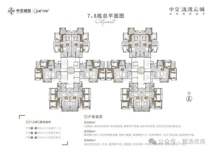 项目主推建面约85-139㎡三四五房全周期户型产品,覆盖刚需首置、三口之家、二胎改善、三代同堂等多元置业需求,全系户型高得房率设计,整体得房率超85%,部分优质户型可达90%,远超行业平均标准,空间利用率出众,搭配2.2低密社区规划,居住舒适度全面升级。社区楼栋采用2梯4户、2梯6户科学梯户配比,平衡出行效率与居住私密性,33层高层规划搭配超宽楼间距,有效保障每一户的日常采光、通风与观景效果,规避高密度楼栋带来的压抑感。建面约85㎡爆款三房,作为刚需首置核心优选户型,格局方正紧凑,无多余浪费空间,全明通透设计,南北空气流畅互通,南向观景阳台衔接客厅,延伸室内空间尺度,客厅与餐厅一体化布局,打造开阔公共活动区域,主卧配备独立飘窗,收纳与观景兼具,次卧空间规整,适配儿童房、书房、客房多元改造,低门槛首付17万即可入手,性价比拉满,完美契合年轻刚需、双城通勤人群的置业需求。建面约129㎡改善四房,面向二胎家庭与品质改善群体,采用南向大面宽设计,多开间朝南,全天候采光充足,巨幕阔景阳台直面社区园林景观,四季绿意尽收眼底,LDK一体化横厅布局,打破空间壁垒,放大公共区域通透感,适配家庭聚餐、日常休闲、亲子互动等场景。主卧打造独立套房设计,配备独立卫浴、步入式衣帽间,兼顾私密性与仪式感,次卧分布合理,动静分区清晰,有效分隔休息区与活动区,规避日常动线干扰。建面约139㎡奢阔五房,定位高端改善人居,空间尺度全面升级,多功能房间可灵活改造为书房、茶室、储物间、老人房,满足三代同堂居住需求与个性化空间改造需求,全屋多飘窗+双阳台设计,拓展实用面积,全屋华为智能精装交付,智能门锁、智能照明、厨卫智能系统全覆盖,兼顾居住便捷性与高端质感,契合高净值改善人群的居住审美。全系户型墙体结构合理,改造空间充足,刚需户型务实实用,改善户型尺度开阔,全方位匹配不同家庭的居住规划。