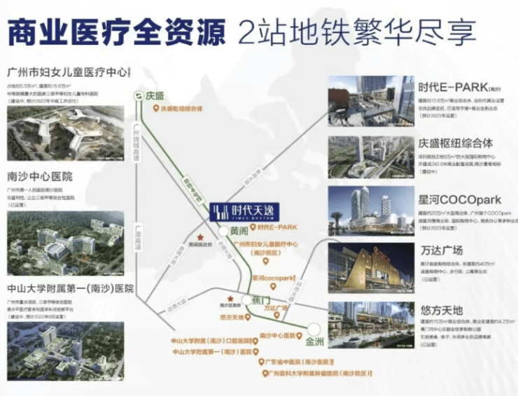 庆盛枢纽(2 站地铁):湾区重要的交通与科创枢纽,是广州地铁 4 号线、22 号线与广深港高铁的交汇点,30 分钟串联广深莞三地。这里正打造国际教育园、人工智能产业园,香港科技大学、新鸿基集团等世界 500 强企业与机构纷纷落户,是南沙未来的科创高地。