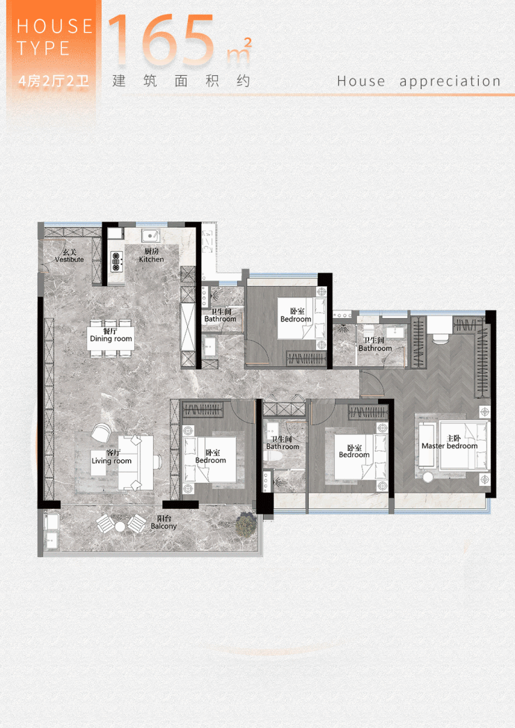 目前,项目主推二期产品,主力户型包括建面约105㎡和128㎡的四房两厅两卫设计。这些户型均采用了超新规设计,使用率达到120%,并实现了户户大面宽朝南,确保每个房间都能享受充足的阳光。特别是建面约128㎡的户型,南北对流,南向面宽超过14米,配备了8.65米IMAX阔景阳台,让业主能够享受到无遮挡的低密墅景。此外,项目还提供精装修交付标准,进一步提升了居住品质。