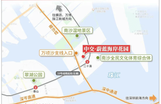 中交・蔚蓝海岸依托 “湾区枢纽 + 基础配套”,打造 3 分钟高端生活圈。交通上,项目距 18 号线南延线二十涌站约 500 米,3 分钟内步行可达,西线 2027 年通中山、东线 2030 年达珠海,30 分钟到深圳前海(深中通道 1 公里);3 分钟内接入区域主干道,自驾高效适配湾区跨城客群。教育与生活上,配建托儿所 + 幼儿园 + 生鲜超市,3 分钟内步行可达,满足 “幼托 + 日常购物” 核心需求。生态与医疗上,一线海景 3 分钟内步行可达,自驾 3 分钟内上深中通道,20 分钟内达在建省中医南沙院区,健康与生态需求一站式满足。对比招商林屿境,项目在交通枢纽能级与海景资源上更优,让湾区顶配资源成为 “家门口福利”。