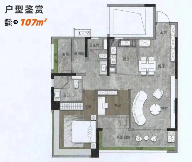 建面约107㎡的三房两厅两卫是入门级主力户型。客厅与次卧共享一个大阳台,主卧带独立卫生间和飘窗,动线清晰,几乎没有浪费面积。稍大一点的143㎡四房,则采用横厅布局,阳台面宽近6米,视野开阔;厨房预留中西厨结合空间,适合喜欢在家招待朋友的家庭。所有户型均强调功能分区明确,收纳系统也做了前置规划,比如玄关柜、阳台家政区等,细节考虑较周全。