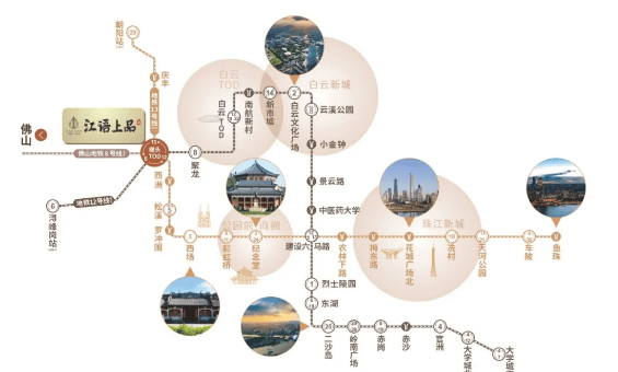 对于购房者而言,交通便捷性是考量项目的重要因素,而江语上品苑在这方面优势显著。项目拥有三地铁交汇的绝佳交通条件,分别是已通车的广州 12 号线、预计 2025 年通车的 13 号线以及规划中的佛山 8 号线。12 号线作为广州换乘之王,是广州市第一条无人驾驶地铁线路,与十数条轨道线无缝换乘,途经白云文化广场、烈士陵园、二沙岛、赤沙等 17 个换乘站,可直达大学城,连通白云、越秀、海珠、番禺四大区域;13 号线为广州东西走向黄金大动脉,未来将途径纪念堂站、冼村站、天河公园、马场等黄金换乘站,实现白云、荔湾、越秀、天河四大主城区一轨畅通,串联省政府、纪念堂、珠江新城等核芯区,直达广州行政、经济中心;佛山 8 号线作为广佛同城线,起于佛山城际站,止于广州槎头站,串连狮山城际、博爱东路、大冲等核心站点,将进一步加速广佛同城化进程,为在佛山工作、广州居住的人群提供便利。