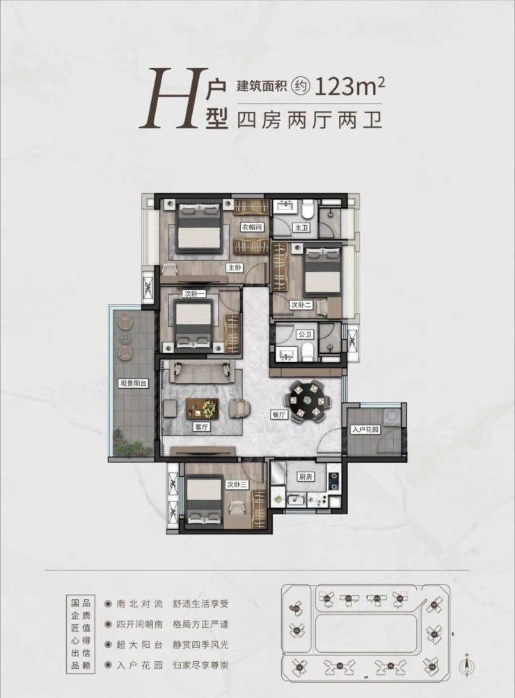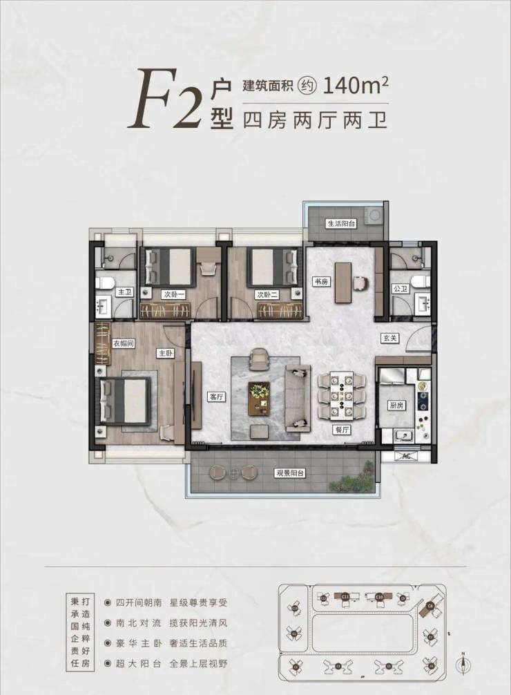 提供 100 - 166㎡阔景舒适户型,满足高端人群不同需求。每栋楼配备双入户大堂,彰显居住体验的尊贵与私密。全南向设计保证充足采光,双层隔音玻璃隔绝外界喧嚣,为住户打造安静、舒适居住空间,享受高品质生活。