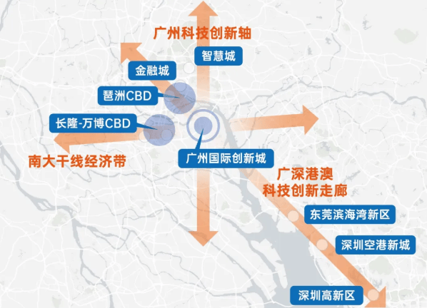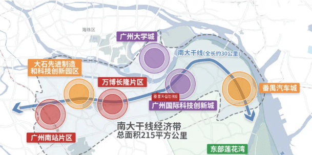 星河·盛世锦城坐落于南大干线经济带上的番禺黄金财智走廊,这一区域不仅是连接珠三角东西岸的重要发展走廊,还串联了广州南站、长隆万博、国际创新城以及汽车城板块等多个关键经济台。区域内汇聚了1900余家高新技术产业,包括希音、欢聚时代、迪士普等行业巨头,共同支撑了番禺的经济发展。两大世界级商圈(万博、琶洲)与三大科创轴(广深港澳科技走廊、广州科技创新轴、南大干线经济带)交汇,形成了强劲的城市发展引擎。