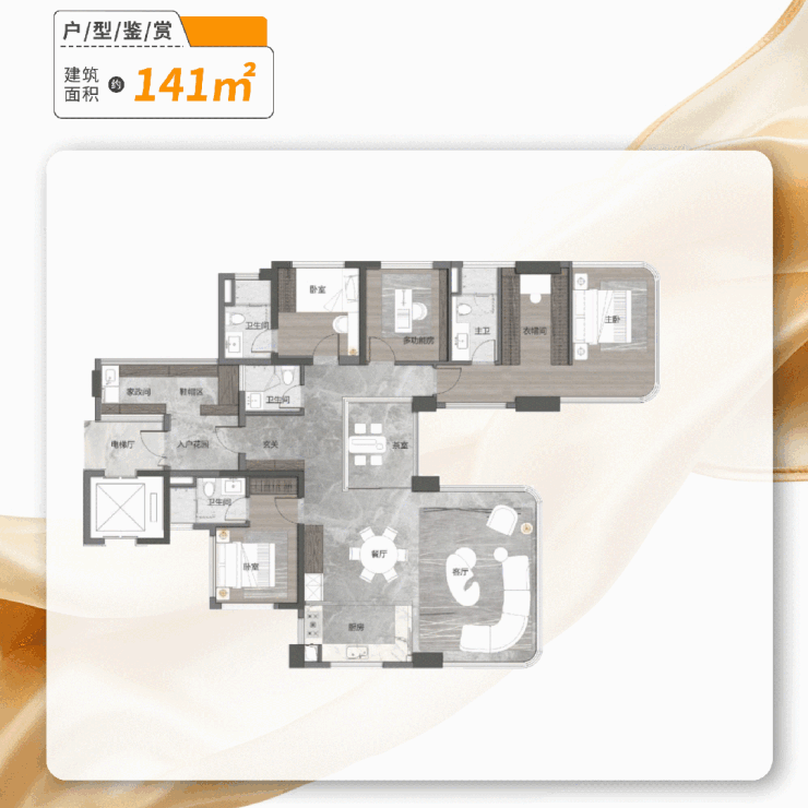 【澜序丨建面约141㎡全景舱户型 五空间两厅四卫】