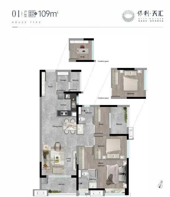 保利天汇五期推出的产品线更为高端,户型面积从99平方米到218平方米不等,涵盖多种三至四房户型,以满足不同客户群体的需求。具体户型包括: