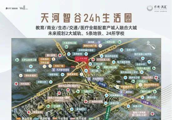 项目采用全生命周期居住系统2.0,配备全屋智能化交标,提供无接触门禁设计和人脸识别进入功能。同时,项目内设有天河智谷第二幼儿园和天河智谷第一实验学校,为业主子女提供优质教育资源。医疗方面,周边有多家知名医院,如暨南大学附属第一医院(东圃分院)、中山大学附属第三医院等,充分满足居民的医疗服务需求。