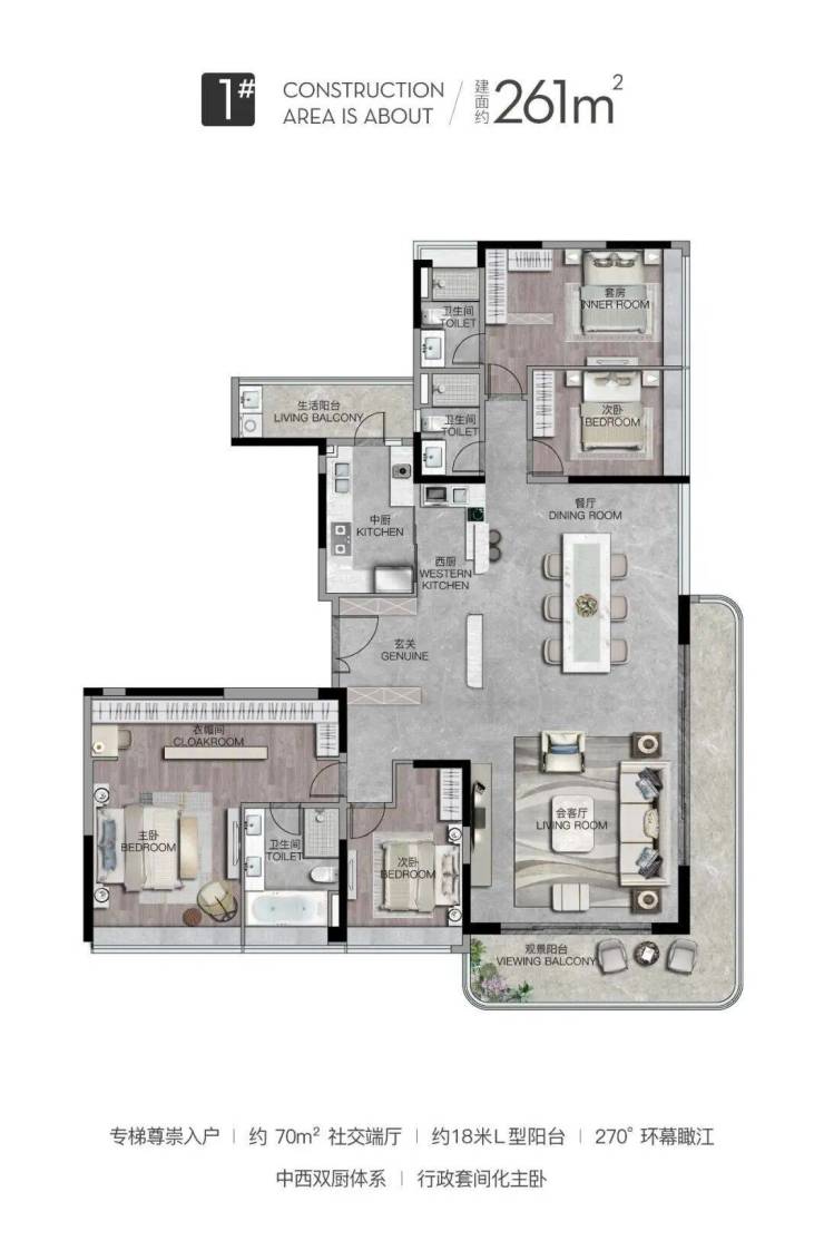 3. 户型设计:三面环幕江景,270°观景视野