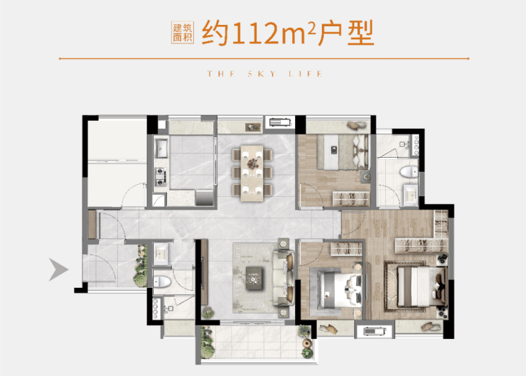 户型设计方面,广州城投·空港1号独具匠心。所有住宅单位均采用南向设计,确保室内采光充足且通风良好。每户配备入户花园,增加了居住空间的私密性和实用性。建面约79-115㎡的户型灵活多变,既适合年轻夫妇的小家庭,也能满足三代同堂的需求。270°视野景观的设计,让住户无论身处何地都能享受到开阔的城市风光。