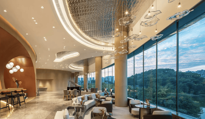 项目打造约35万平方米半山伴湖低密住区,自带20米山体高差,规划“一廊三轴”园林景观,配建空中观湖廊道、湖畔会所、无边度假泳池。实测容积率2.88,远低于市区普遍超5的容积率,居住舒适度极高。