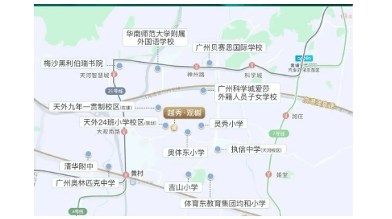 教育方面,项目自配有一座15班幼儿园和一座24班小学,后者由广州天河外国语教育集团合作办学,确保了优质的教育资源。天河外国语学校自成立以来迅速成长为广州优质教育品牌,享有北京大学大学先修课程实施学校等多项荣誉。此外,邻近的缦云近期确认配建了九年一贯制学校,进一步增强了该区域的教育吸引力。