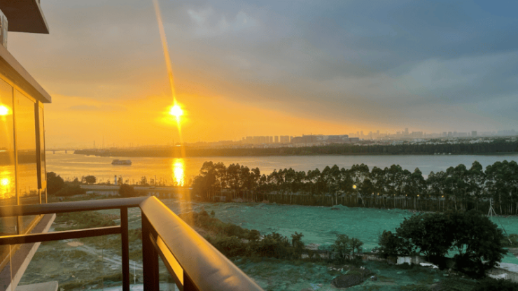 项目毗邻广州番禺和南沙,距离江岸约200米,拥有约600米奢阔江面,为区域内江面宽阔的观景处。家楼下即是约14公里江岸线,三大休闲主题空间分布其中,为业主提供了丰富的休闲娱乐场所。