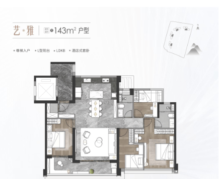 特点:宽敞客厅,主卧配备全景飘窗,享受极致山景