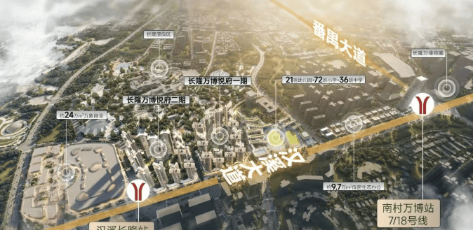 一期距离地铁3/7号线汉溪长隆站仅约500米,步行约8分钟即可到达;二期更是紧邻地铁口,出行极为便利。此外,周边还有多条重要交通线路,如湾区高速地铁18号线、广东城际等,使得前往广州南站等地变得轻松快捷。