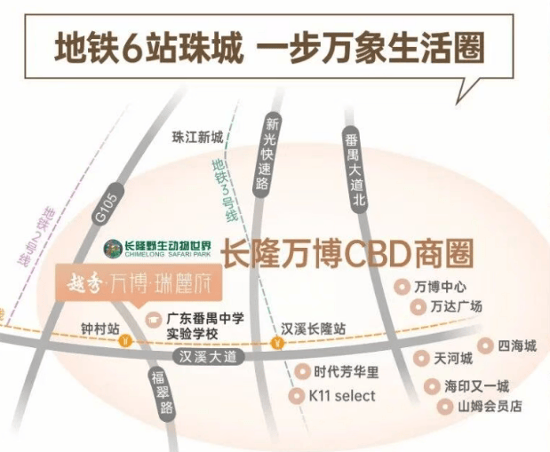 项目紧邻长隆动物世界西南侧,距离万博CBD约5公里,驾车仅需10分钟。