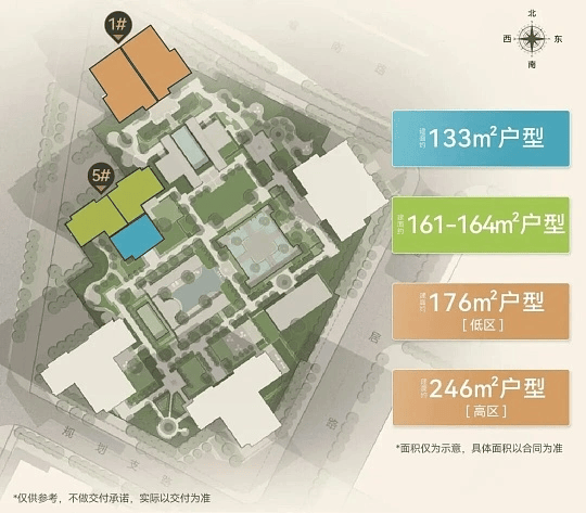 建面约 163㎡墅级大平层 4+2 房 3 卫双主套格局