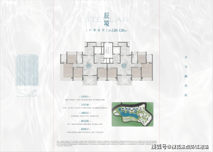 125㎡四房:双套房设计,客厅开间6.8米,南向直面映辰湖,专梯专户,终极改善首选。