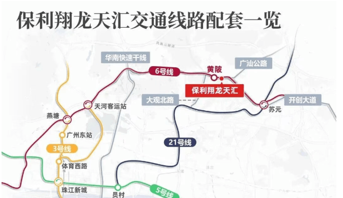 便捷的交通是现代人居的核心要素。保利翔龙天汇距地铁6号线黄陂站直线仅约400米,步行即可抵达,是整个黄陂板块在售新盘中距离地铁最近的项目。搭乘6号线,1站即达天河腹地,6站可至天河客运站换乘3号线,快速连接珠江新城、体育西、广州东站等核心商圈。